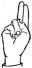 На ћирилици написано БОЈАН БОЛУНОВИЋ састоји се из 14 слова [?]. Исписано ћириличном једноручном азбуком за глувонеме: